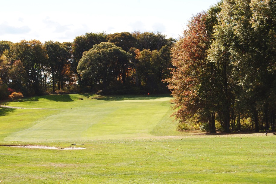 The toughest hole on the front side with water along the rights side. A good tee shot flirts with the tree line and the 8th green. The green is two tiered sloping from left to right and you never want to be above the pin or right of it.